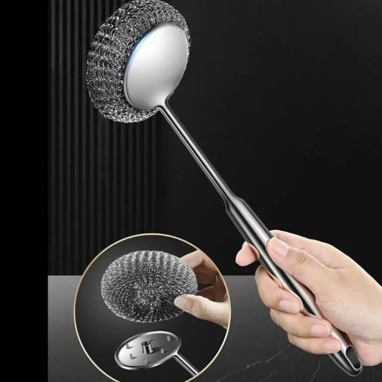 Wenn Sie ein effektives Werkzeug zum Entfernen hartnäckiger Speisereste benötigen, ist dieser langlebige Edelstahl-Schrubber genau das Richtige für Sie. Seine robuste Konstruktion ermöglicht die effiziente Entfernung von angebrannten Speiseresten und Fett, ohne Ihr wertvolles Kochgeschirr zu zerkratzen. Der komfortable Griff sorgt für ein einfaches und angenehmes Reinigungserlebnis und macht ihn zu einer praktischen Ergänzung Ihrer Küchenausstattung.