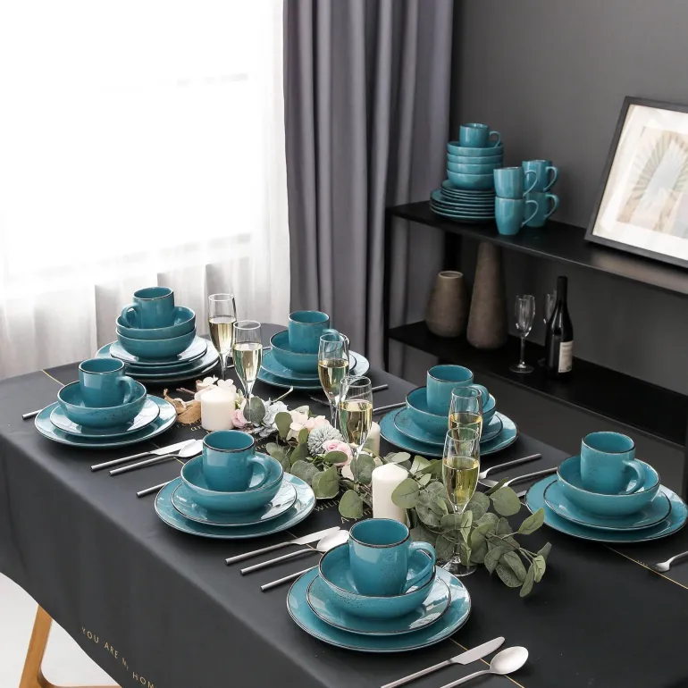 Ob Sie eine Dinnerparty veranstalten oder ein gemütliches Essen zu Hause genießen – dieses Tafelservice ist die perfekte Grundlage für Ihre kulinarischen Kreationen. Dank seiner robusten Keramik werden Sie seine Schönheit und seinen Nutzen jahrelang genießen. Erleben Sie die Kunst des Essens mit diesem langlebigen Service, der alltägliche Mahlzeiten in unvergessliche Momente verwandelt.