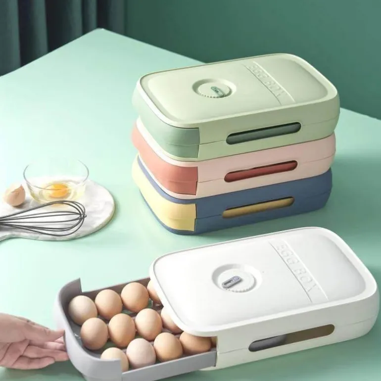 Jede Schublade ist mit einem Gitter ausgestattet und bietet einzelne Fächer, die so geformt sind, dass sie ein einzelnes Ei sicher halten. Dieses Design minimiert das Risiko von Kollisionen zwischen den Eiern und beugt so Beschädigungen vor. Die Stapelbarkeit ermöglicht eine effiziente Anordnung der Schubladen und maximiert so den Stauraum für Ihren täglichen Bedarf.