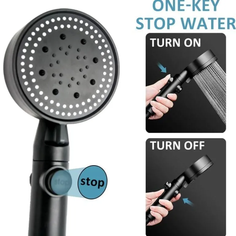 Der Duschkopf ist auf Benutzerfreundlichkeit ausgelegt und verfügt über einen EIN/AUS-Schalter am Düsengriff, mit dem Sie den Wasserfluss jederzeit mühelos stoppen können.