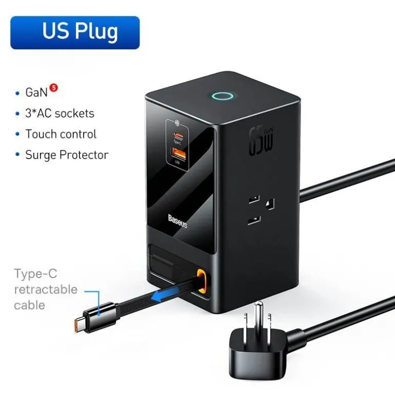 **Einziehbarer Typ C + (Typ C + USB) Ausgang:** 45 W + 15 W