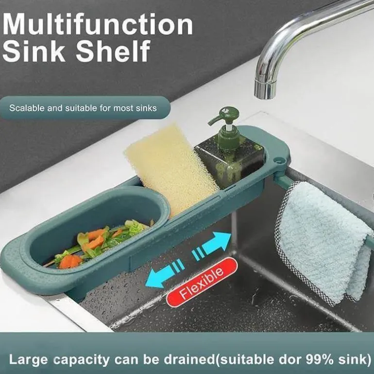 1. **Erweiterbares Design:** Dieses Gestell passt sich verschiedenen Anforderungen an, sodass Sie die Länge an verschiedene Spülbeckengrößen anpassen können und gleichzeitig reichlich Stauraum bieten.