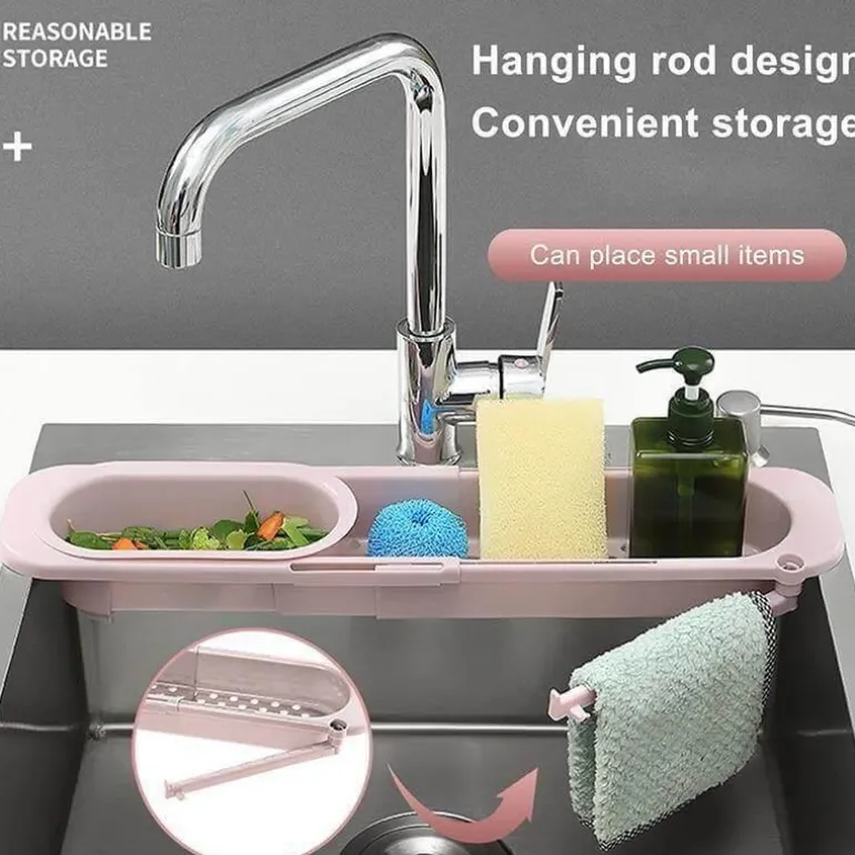 Verbessern Sie Ihre Küchenorganisation mit diesem ausziehbaren Spülbecken-Organizer – einer praktischen Lösung zum Abtrocknen und Aufbewahren von Geschirr. Hergestellt aus strapazierfähigem und umweltfreundlichem ABS-Kunststoff, ist dieser Organizer sicher und mühelos zu reinigen. Er bietet bequem Platz für verschiedene wichtige Utensilien wie Schwämme, Bürsten, Rasierer, Zahnbürsten und Seife. Das ausziehbare Regal ist für verschiedene Spülbeckengrößen geeignet und sorgt für eine vielseitige Einsetzbarkeit in Ihrer Küche.