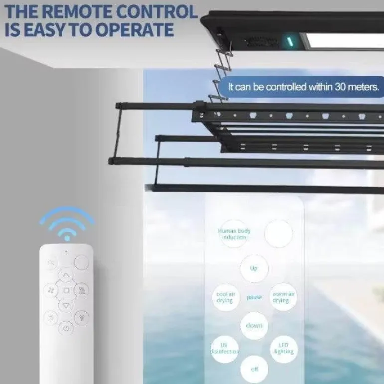 1 x umweltfreundlicher, intelligenter Wäscheständer mit einziehbarer Fernbedienung für die Decke.