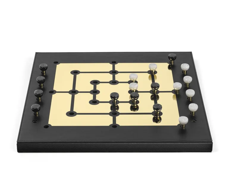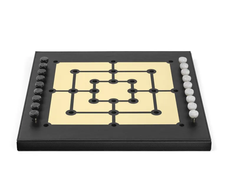 We are thrilled to present the Mill game, a sophisticated strategy board game that adds a touch of elegance to any setting.