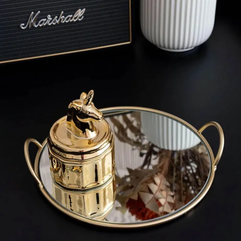 Die reflektierende Oberfläche fängt das Licht ein und verleiht jedem Raum Tiefe und Helligkeit. Ob Sie Gäste bewirten oder Ihre Wohnkultur aufwerten – dieses vielseitige Tablett ist perfekt, um Ihren Einrichtungsstil zu unterstreichen. Erleben Sie die Eleganz, die es Ihrem Zuhause verleiht, und bestellen Sie es noch heute.