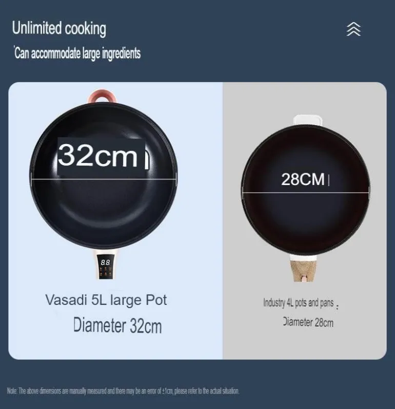 Dank ihres benutzerfreundlichen Designs und der effizienten Heizleistung vereinfacht diese elektrische Bratpfanne nicht nur das Kochen, sondern verbessert auch den Geschmack und ist somit ein unverzichtbares Werkzeug für Anfänger und erfahrene Köche. Ob Sie ein herzhaftes Frühstück oder ein schnelles Abendessen unter der Woche zubereiten, dieses Gerät erfüllt Ihre Bratbedürfnisse mit Leichtigkeit.