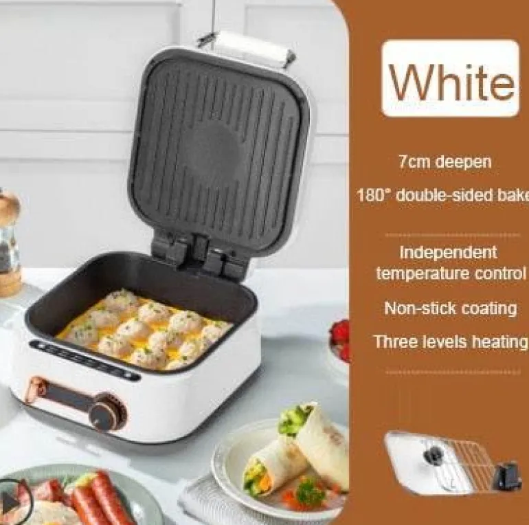 Erweitern Sie Ihr Kocherlebnis mit der elektrischen doppelseitigen Backform, die Ihren Küchenkreationen Leichtigkeit und Geschmack verleiht.