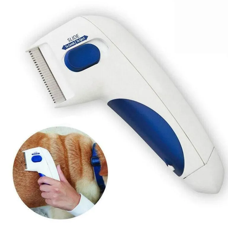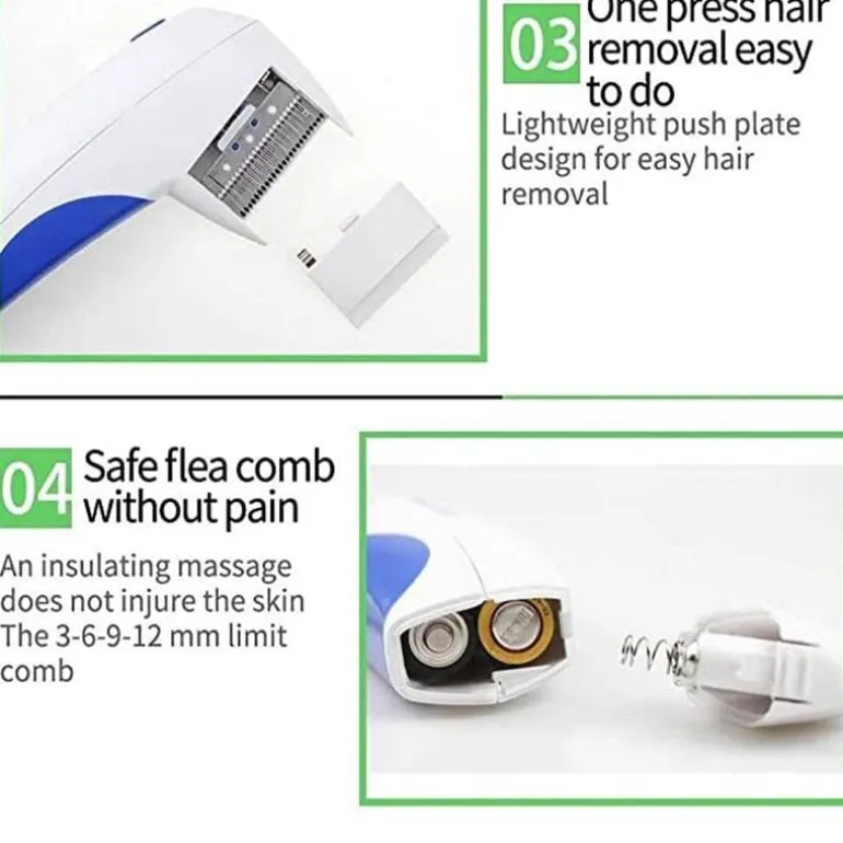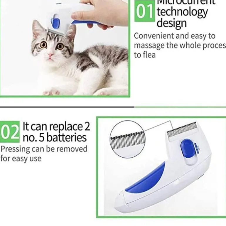 Dieser kabellose Elektrokamm wird mit 2 AA-Batterien (nicht im Lieferumfang enthalten) betrieben und gibt eine leichte elektrische Ladung ab, die für ein sauberes und schädlingsfreies Fell sorgt. Hergestellt aus robustem ABS-Kunststoff und mit eng beieinander liegenden Edelstahlzähnen sorgt er für eine sichere Fellpflege, bei der der Komfort Ihres Haustieres im Vordergrund steht.