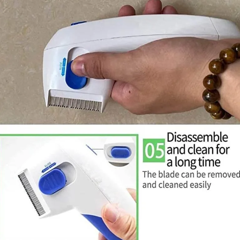 Pflegen Sie Ihre Haustiere effektiv mit der elektrischen Floh- und Läusebürste. Sie wurde speziell zur Bekämpfung von Flöhen und Läusen entwickelt und reduziert bei regelmäßiger Anwendung den Haarausfall um bis zu 90 %. Das innovative einreihige Design verbessert die Sichtbarkeit und erleichtert das Erkennen und Entfernen von Schmutz im Fell Ihres Haustieres. Der ergonomische Griff sorgt für einen angenehmen Halt während der Fellpflege, und die abgerundete Kante passt sich den natürlichen Konturen Ihres Haustieres an. Dieses Gerät sorgt für eine sanfte und effektive Fellpflege.