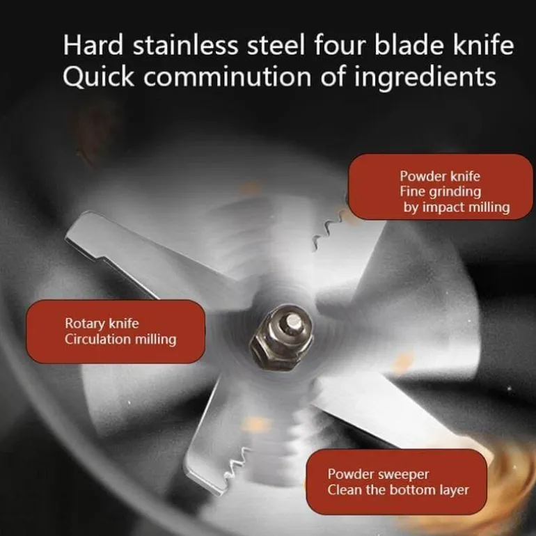 Bitte beachten Sie, dass diese Mühle nicht für feuchte Materialien wie Gemüse, Obst, Fleisch, getrocknete Knochen oder holzige Heilwurzeln geeignet ist. Beim Mahlen öliger Zutaten wie Sesamsamen, Walnüssen und Erdnüssen empfiehlt es sich, diese vorher anzubraten, um den Ölgehalt zu reduzieren und das Mahlen zu optimieren.