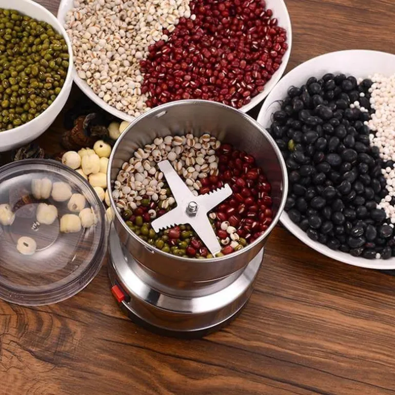 Erleben Sie effizientes Mahlen mit der elektrischen Mini-Kaffeemühle. Sie eignet sich für eine Vielzahl von Zutaten wie Kaffeebohnen, Getreide, Gewürze, Kräuter, Nüsse und Trockenfrüchte. Diese kompakte Mühle verarbeitet mühelos Kaffeebohnen, Mais, Gerste, braunen Reis, Quinoa, Sojabohnen, Tee und mehr. Dank des benutzerfreundlichen Designs ist manuelles Ankurbeln nicht mehr nötig – drücken Sie einfach die Taste, und schon beginnt das Mahlen.