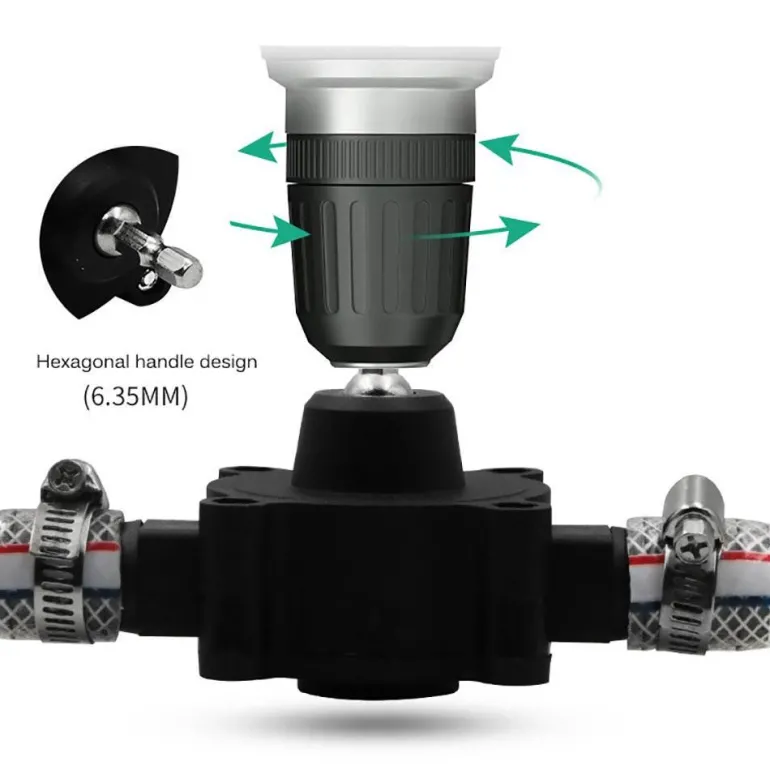 – Kompatibel mit allen Bohrfuttern, sodass Sie Ihre elektrische Bohrmaschine in eine funktionsfähige Pumpe verwandeln können.