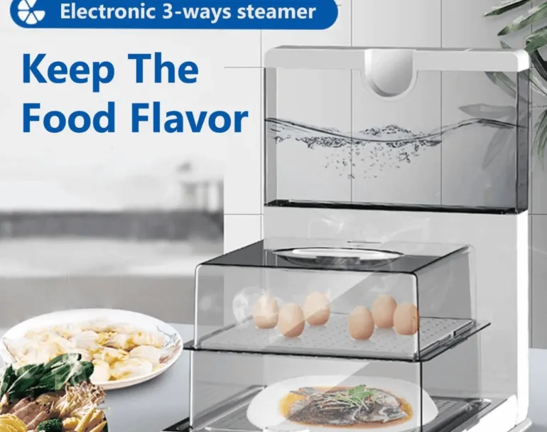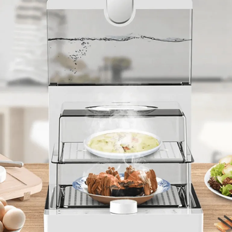 Dieser benutzerfreundliche Dampfgarer eignet sich perfekt für eine Vielzahl von Zutaten, darunter Gemüse, Fleisch, Fisch und Geflügel. Er erhält wichtige Nährstoffe und benötigt keine zusätzlichen Speiseöle. Dank der transparenten Dampfschalen können Sie den Garvorgang mühelos beobachten.