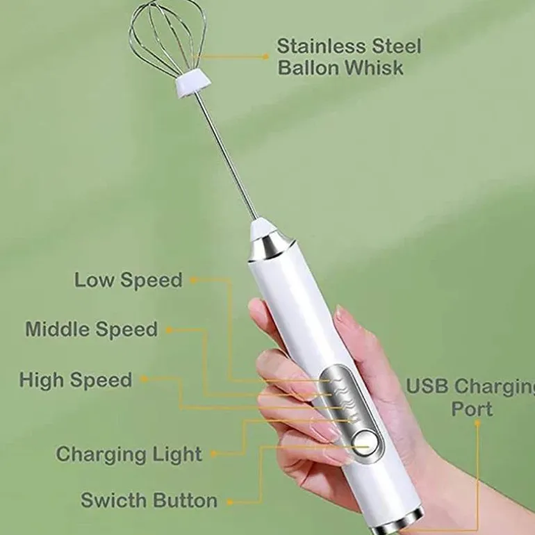 Dank drei einstellbarer Geschwindigkeitsstufen können Sie den Aufschäumvorgang ganz einfach an die gewünschte Konsistenz anpassen. Ob Sie Milch für einen samtigen Latte aufschäumen, Eier für ein luftiges Omelett schlagen oder Zutaten für ein köstliches Dessert mixen – dieses Gerät erfüllt alle Ihre Mixanforderungen.
