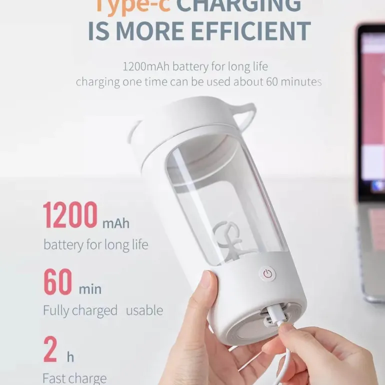 Erleben Sie nahtloses Mixen mit unserem elektrischen Protein-Shaker-Mixer aus langlebigem Tritan, das vollständig BPA-frei ist. Das robuste Design ist bruchfest und garantiert Langlebigkeit auch bei versehentlichem Herunterfallen. Dank des praktischen Tragegriffs können Sie Ihren Shaker auch unterwegs problemlos mitnehmen. (Für optimale Leistung laden Sie die elektrische Shaker-Flasche vor dem ersten Gebrauch vollständig auf.)
