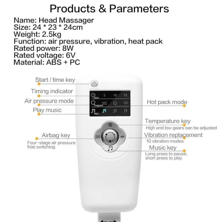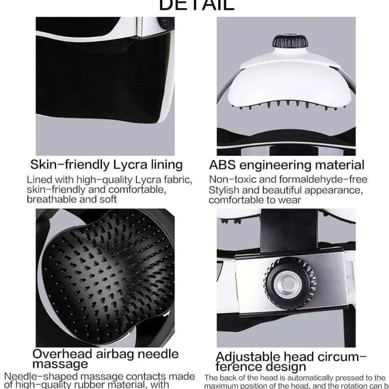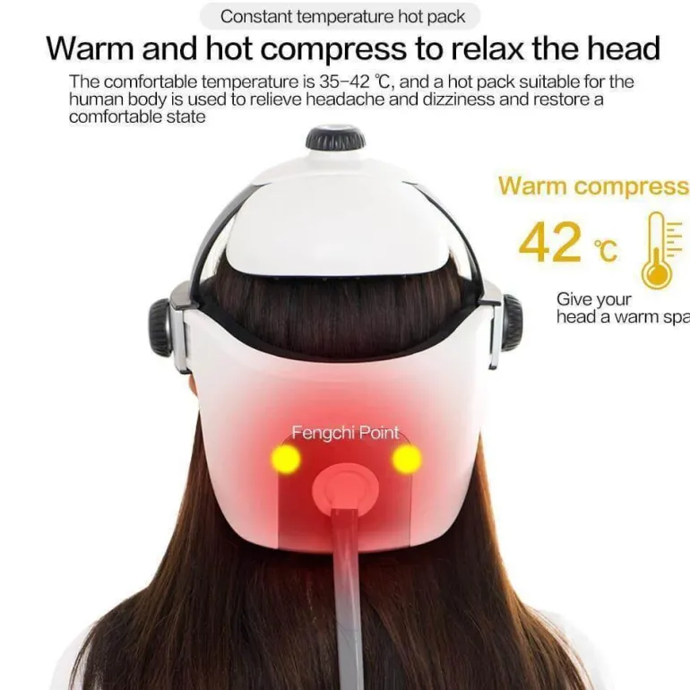 Dank seines verstellbaren Designs passt sich dieses Kopfmassagegerät bequem an verschiedene Kopfgrößen an und bietet jedem Benutzer ein individuelles Erlebnis. Die intuitive Fernbedienung ermöglicht eine mühelose Navigation durch verschiedene Massagemodi, darunter Vibrationsmassage, Luftdrucktherapie und Ferninfrarotwärme, um Ihren individuellen Entspannungsbedürfnissen gerecht zu werden.