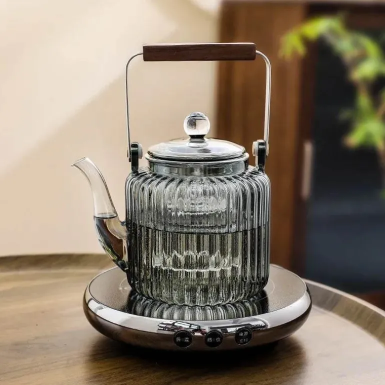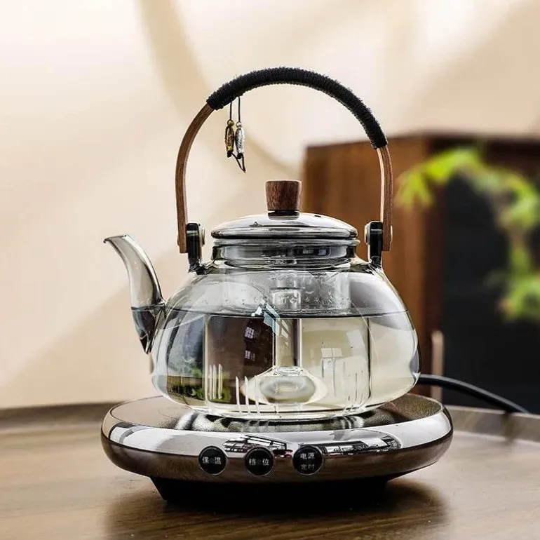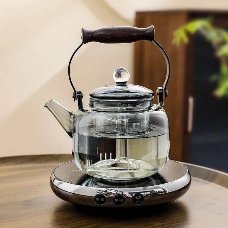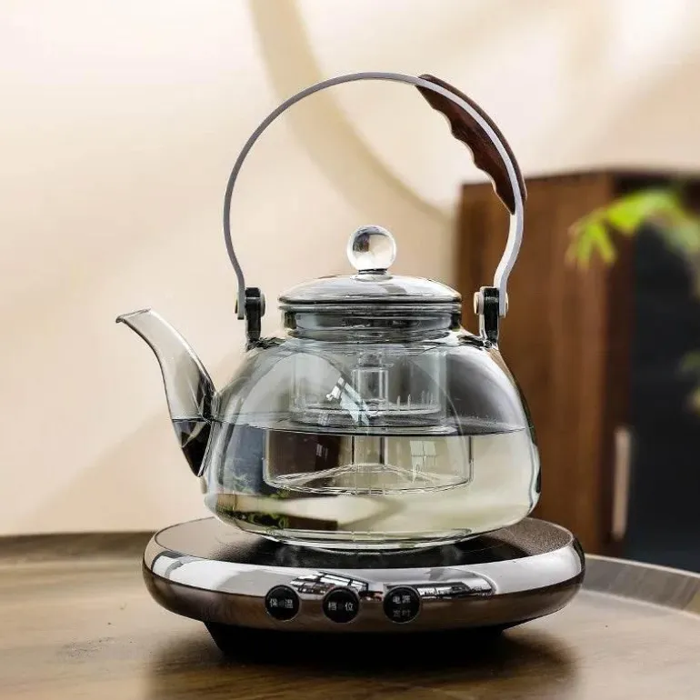 1x Elektrisches Teekannenset aus klarem Glas