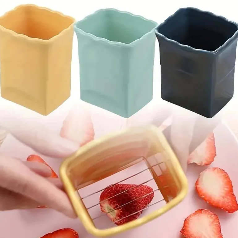 Mit diesem Erdbeerschneider, der mühelos Obst und Gemüse schneidet, wird die Zubereitung schnell und einfach. Dank seines kompakten und leichten Designs eignet er sich perfekt für den Heimgebrauch, Camping und Outdoor-Abenteuer.
