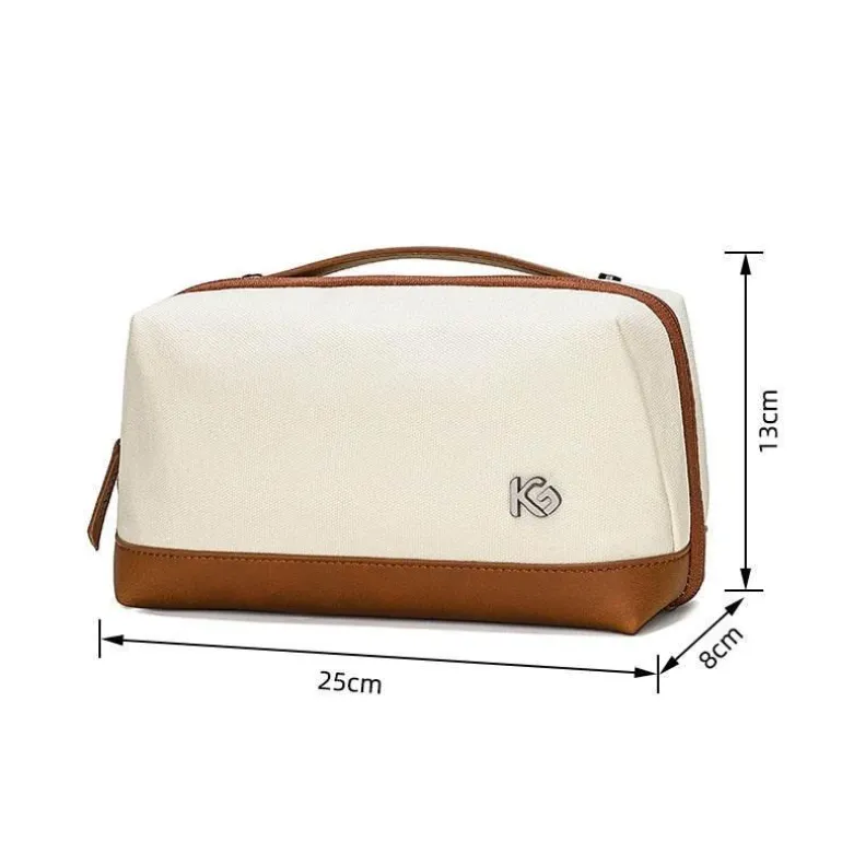 Diese Kosmetiktasche aus hochwertigem, strapazierfähigem und wasserdichtem Material ist für die Anforderungen auf Reisen konzipiert. Sie können Ihre Produkte bedenkenlos einpacken, ohne sich Sorgen machen zu müssen, dass verschüttete Flüssigkeiten oder Lecks Ihre Kosmetika oder die Tasche selbst beschädigen.