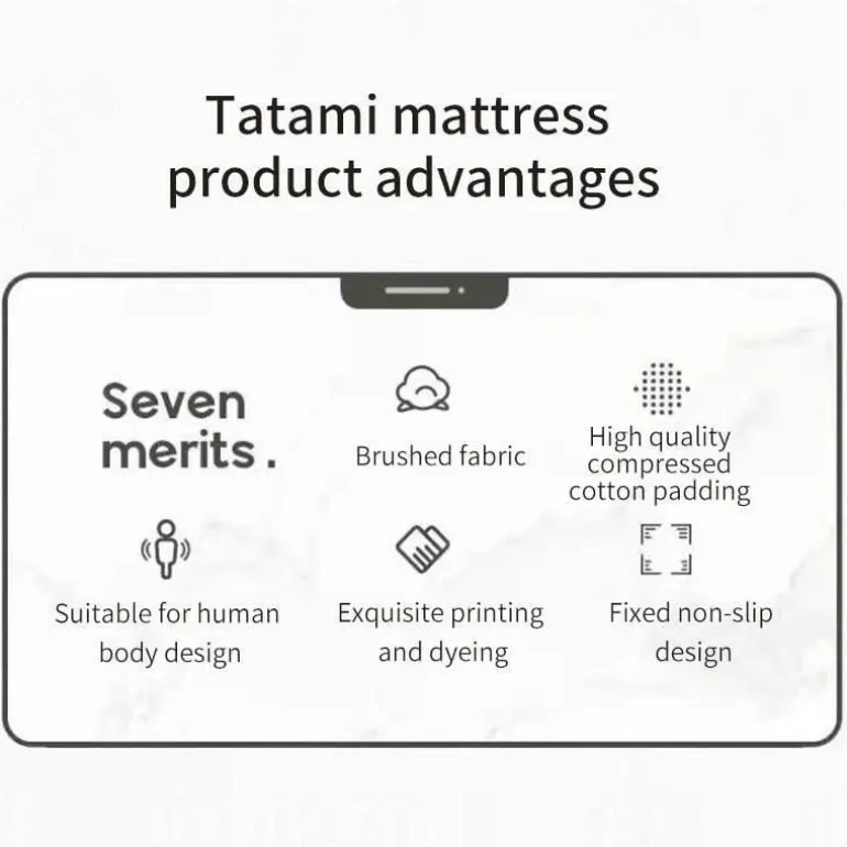 Erleben Sie ein neues Komfortniveau mit der faltbaren, mehrlagigen, weichen Matratze im Tatami-Design, die Ihre Schlafqualität verbessert. Diese Matratze verfügt über eine glatte, einladende Oberschicht, die Seitenschläfern eine sanfte Polsterung bietet und Schultern und Hüften stützt. Unter der Oberschicht befindet sich eine konturierte Mittelschicht aus Memory-Schaum, die sich Ihrem Körper anpasst und für eine ausgewogene Unterstützung die ganze Nacht über sorgt. Die feste Unterschicht bildet eine stabile Grundlage und fördert die richtige Ausrichtung während des Schlafs.