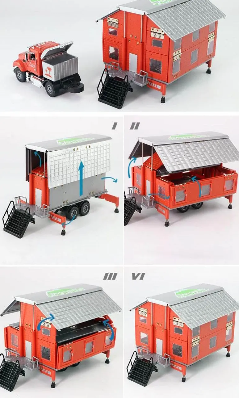 Dieser faltbare Wohnmobilanhänger im Maßstab 1:50 ist perfekt für begeisterte Sammler und abenteuerlustige junge Entdecker. Mit seinen funktionsfähigen Teilen und authentischen Details vereint er Form und Funktion perfekt. Dieses robuste Spielzeug ist vielseitig einsetzbar und lässt sich mühelos vom auffälligen Ausstellungsstück zum dynamischen Element für fantasievolles Spielen verwandeln.