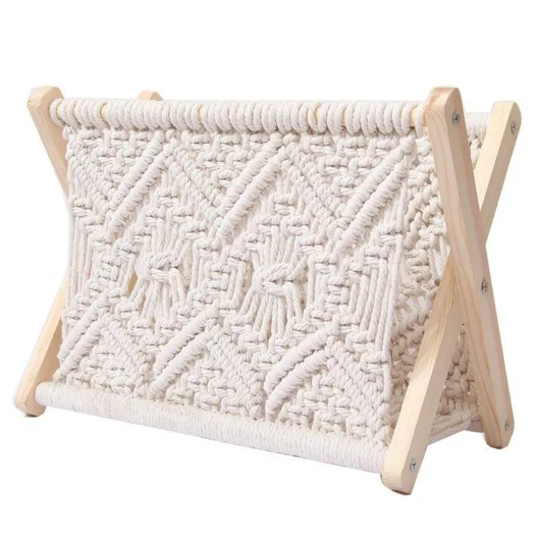 Dieser elegante Mini-Zeitschriftenständer aus Makramee wertet jeden Raum auf – ob Wohnzimmer, Schlafzimmer, Badezimmer, Kinderzimmer oder Büro. Platzieren Sie ihn einfach neben einem Stuhl oder Beistelltisch, um Ihre Lieblingsbücher, Zeitungen, Zeitschriften, Schals und andere Gegenstände übersichtlich und griffbereit aufzubewahren.
