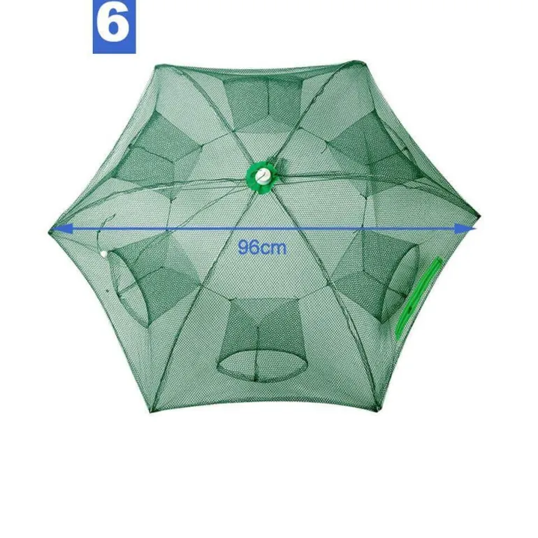 Erleben Sie stressfreies Angeln mit unserem faltbaren automatischen Fischernetz, das für effektive und effiziente Fänge entwickelt wurde. Dieses innovative Netz verfügt über einen robusten Schirmrahmen, der Langlebigkeit und Rostbeständigkeit gewährleistet. Mit strategisch platzierten Garneleneinlässen zwischen den Rippenpaaren ist dieses Netz ideal zum Fangen von Fischen, Garnelen, Krabben und mehr. Das einzigartige Design von groß nach klein ermöglicht Wasserlebewesen einen einfachen Zugang und erschwert gleichzeitig die Flucht.
