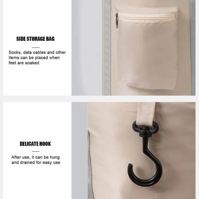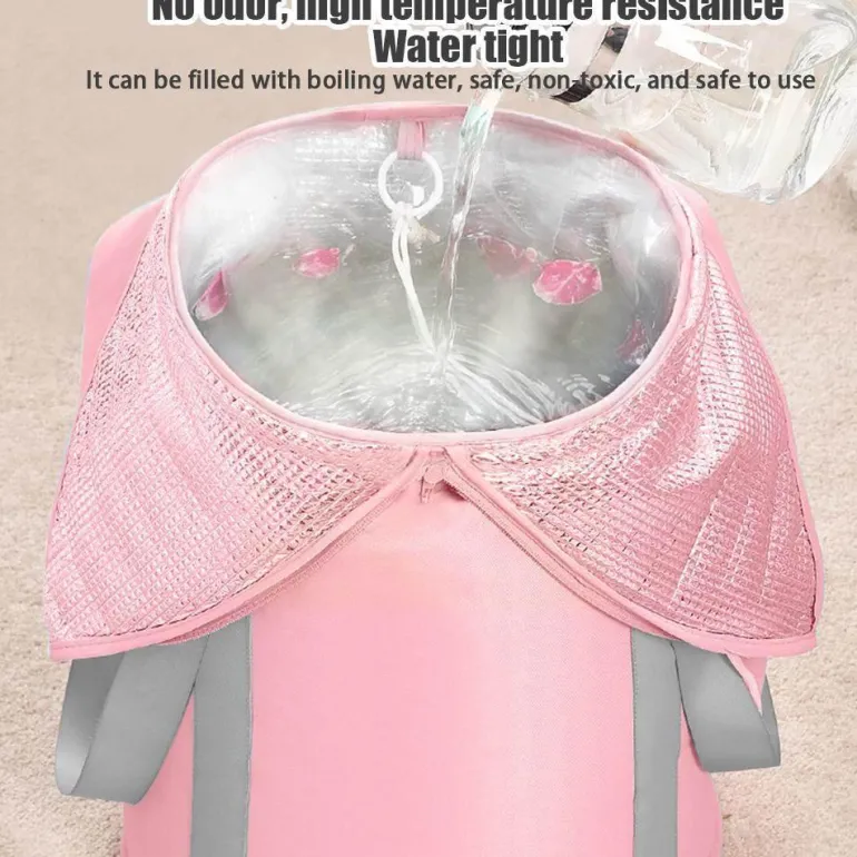 Verwöhnen Sie Ihre müden Füße mit unserem tragbaren, faltbaren Fußbad, das jeden Raum in ein persönliches Spa-Erlebnis verwandelt. Dieses Fußbad besticht durch seine zweischichtige Konstruktion für höchste Haltbarkeit. Die Außenschicht besteht aus wasserdichtem und verschleißfestem Material, während die Innenschicht aus fortschrittlichem PEVA besteht und Temperaturen bis zu 80 °C standhält.