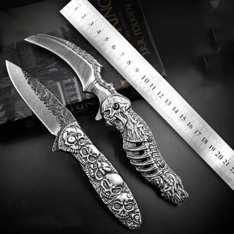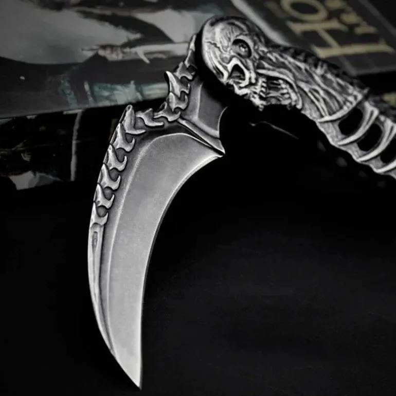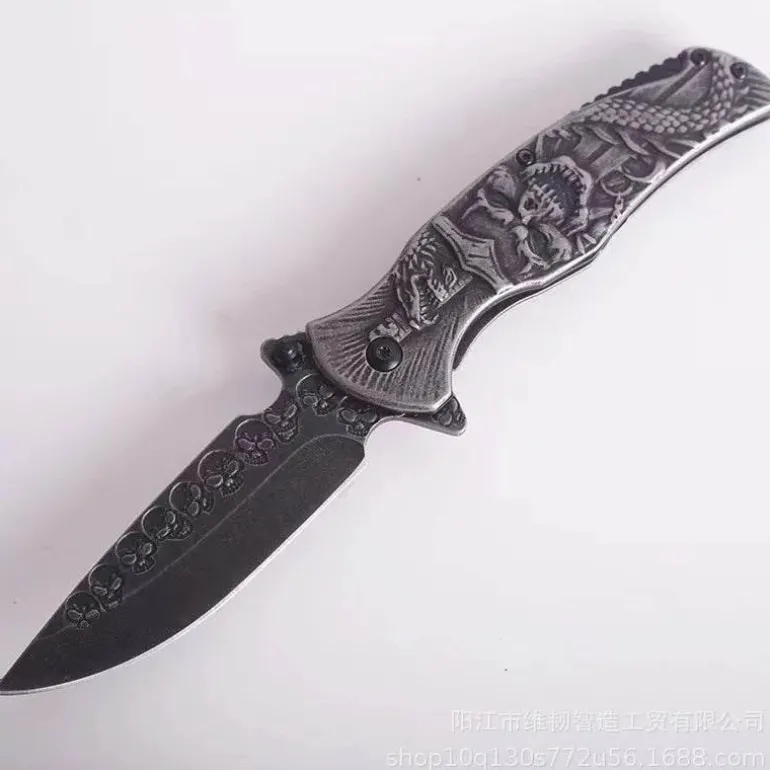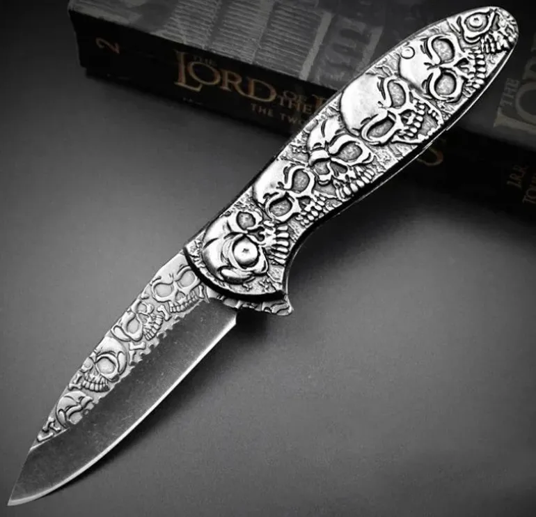 Dieses robuste und langlebige, faltbare Taschenmesser besticht durch sein taktisches Design mit einem markanten Totenkopfmotiv. Es eignet sich perfekt für verschiedene Outdoor-Aktivitäten oder als praktisches Werkzeug für den Alltag (EDC). Sein kompaktes Design ermöglicht einen sicheren und bequemen Transport. Das Messer verfügt über eine scharfe, zuverlässige und effiziente Edelstahlklinge und einen stabilen Griff, der bei jeder Schneidaufgabe sicheren Halt bietet. Ob Outdoor-Enthusiast oder Sammler, dieses taktische Totenkopfmesser ist eine funktionale Ergänzung Ihrer Ausrüstung.
