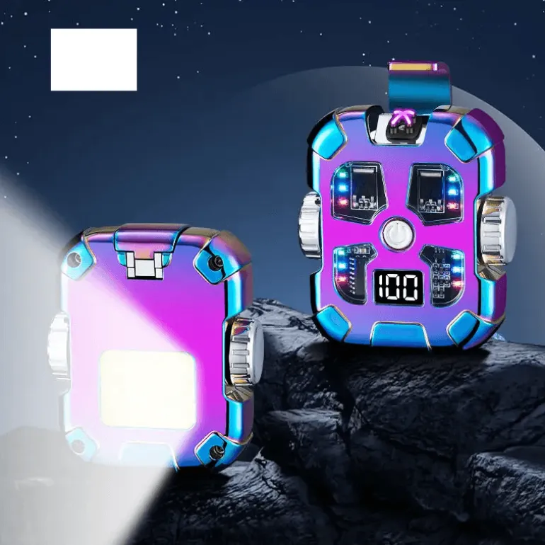 Verbessern Sie Ihr Feuererlebnis mit dem aufladbaren, farbenfrohen, flammenlosen Pulse Arc Feuerzeug. Dieses innovative Feuerzeug vereint fortschrittliche Technologie mit stilvollem, mecha-inspiriertem Design und bietet eine zuverlässige Zündung, die Wind und Umwelteinflüssen standhält. Die Doppelbogen-Plasmaflamme zündet schnell und effizient, während leuchtende LED-Leuchten für ein modernes Flair sorgen.