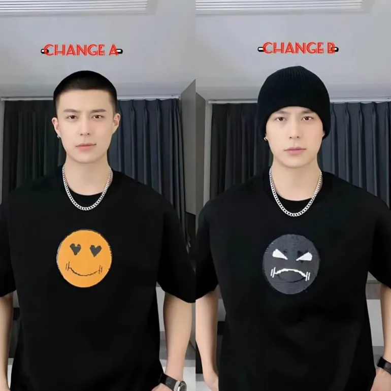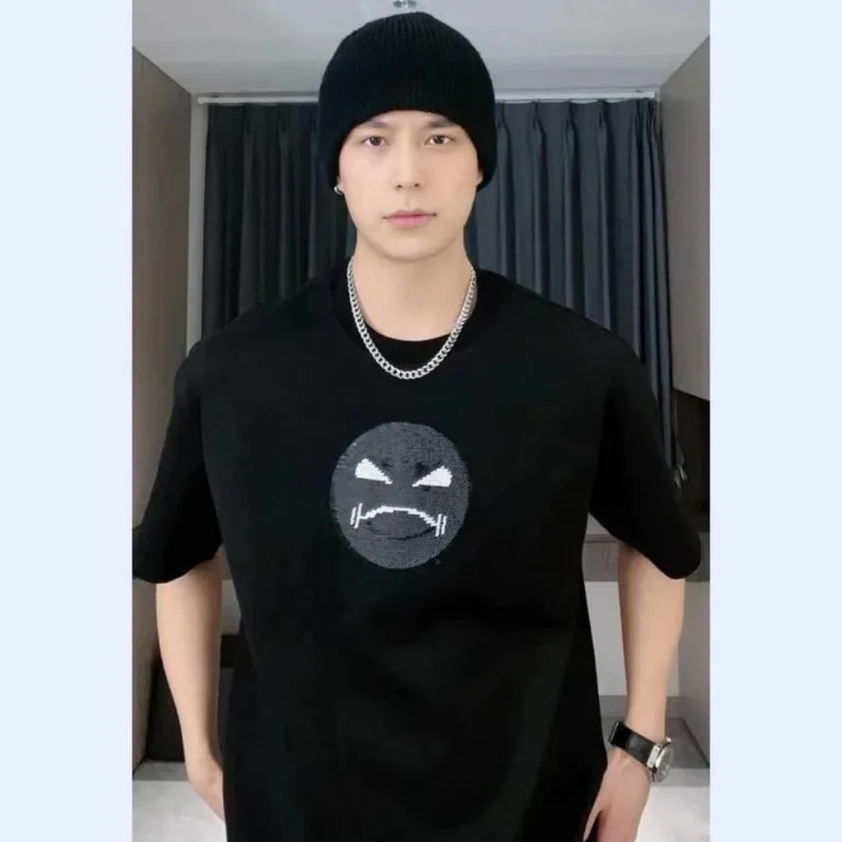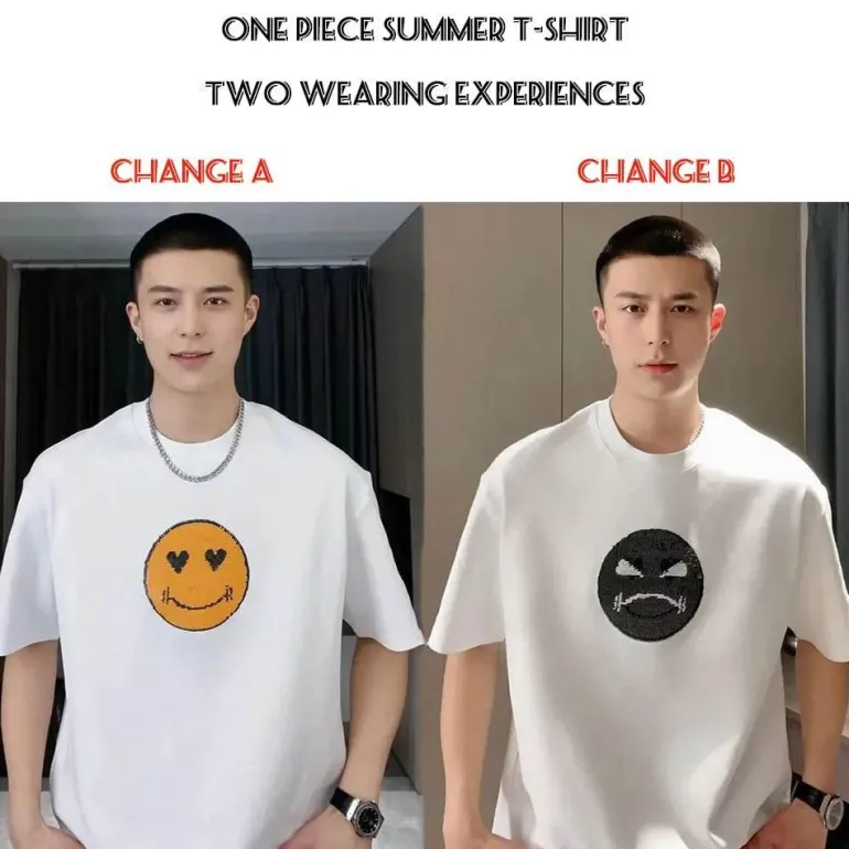 Erleben Sie den verspielten Charme unseres Mood Swing Sequin Smiley Face T-Shirts, das liebevoll für jeden Anlass entworfen wurde. Dieses Unisex-Oberteil zeigt ein lebendiges Smiley-Gesicht, das sich bei Berührung in ein Stirnrunzeln verwandelt und Ihnen ermöglicht, Ihre Gefühle auf spielerische und interaktive Weise auszudrücken. Dieses bequeme T-Shirt aus weicher, atmungsaktiver Baumwolle ist perfekt für sonnige Tage und entspannte Ausflüge und sorgt dafür, dass Sie sich unabhängig von Ihrer Stimmung wohlfühlen.