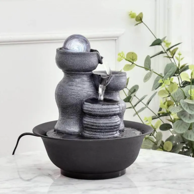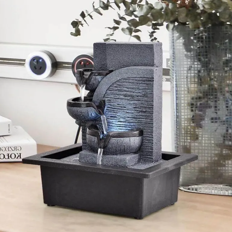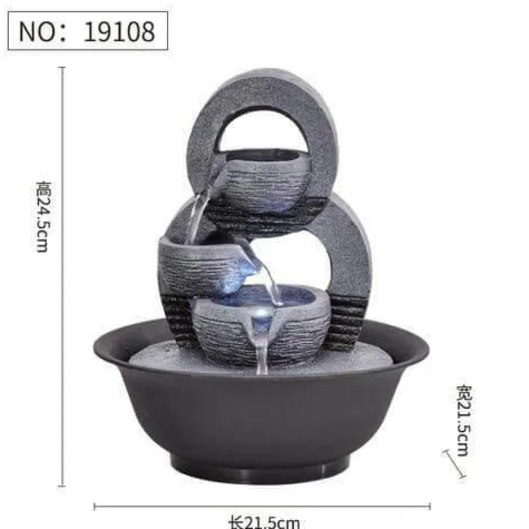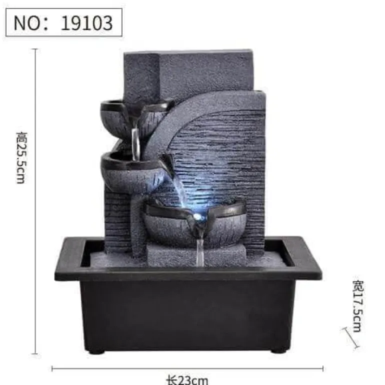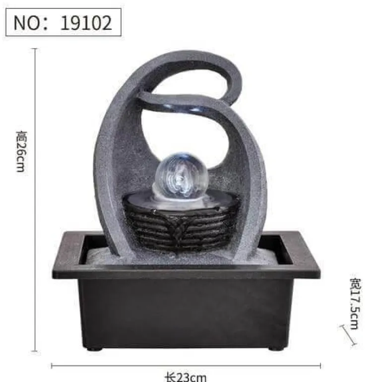 Das sanfte Geräusch fließenden Wassers schafft eine beruhigende Atmosphäre und macht ihn zu einer hervorragenden Ergänzung für jeden Raum. Sein elegantes Design dient nicht nur als beruhigender Blickfang, sondern ergänzt auch Ihre Wohnkultur wunderbar. Ob im Wohnzimmer, im Meditationsbereich oder im Büro – dieser Springbrunnen hebt Ihre Stimmung und verleiht Ihrer Umgebung ein Gefühl der Ruhe.