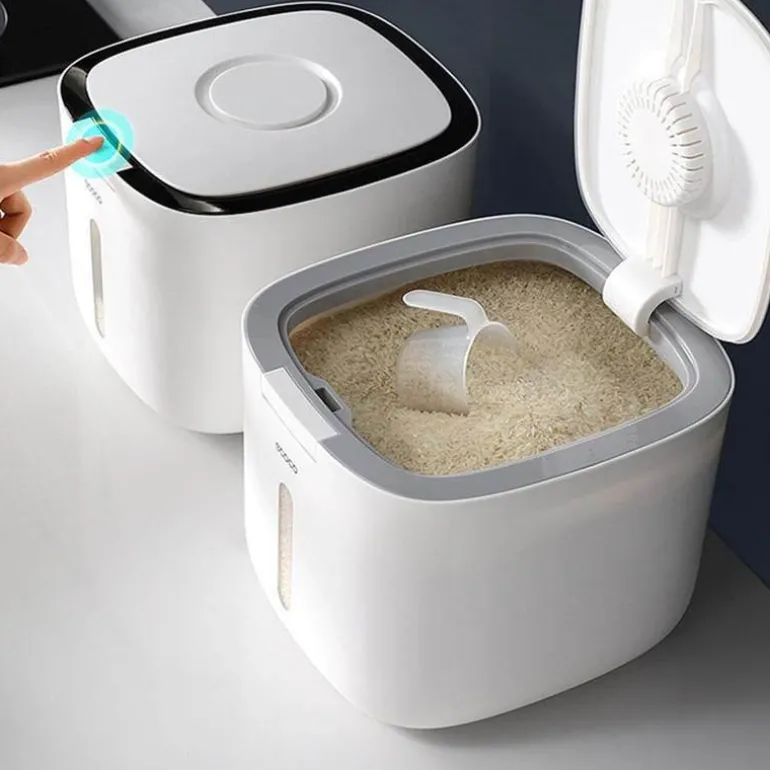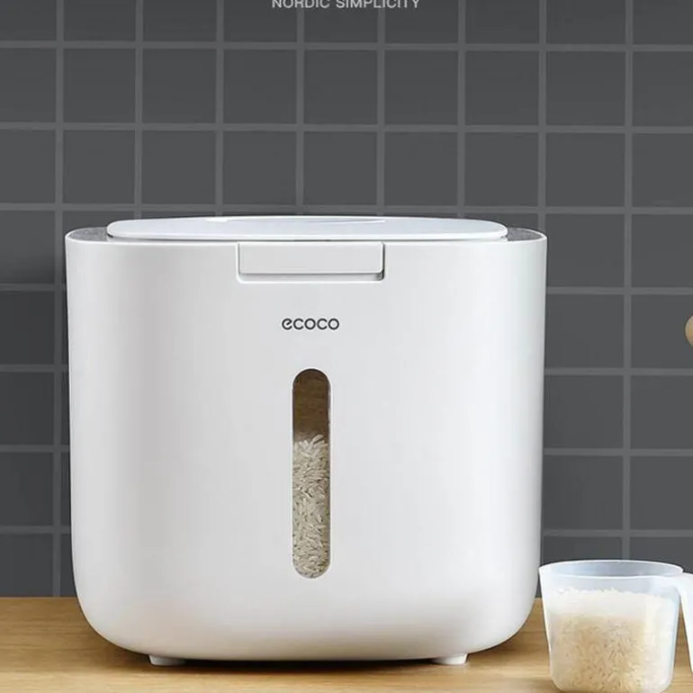 Der feuchtigkeitsbeständige Getreidebehälter ist fachmännisch gefertigt, um Ihre Lebensmittel trocken, frisch und sauber zu halten. Sein zuverlässiger, dichter Verschluss verhindert effektiv die Kontamination durch Bakterien und Feuchtigkeit und sorgt dafür, dass Ihr Getreide länger in optimalem Zustand bleibt.