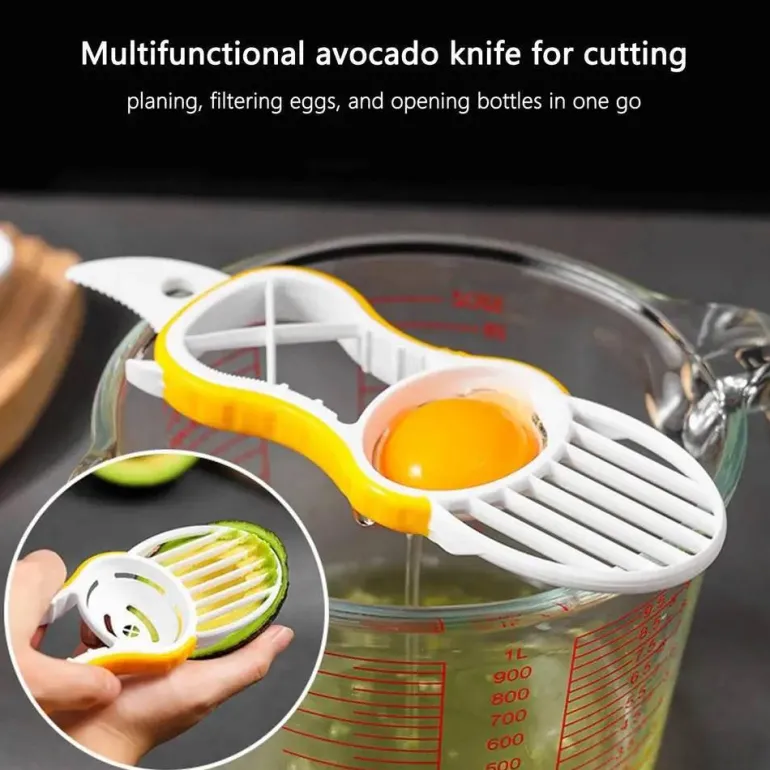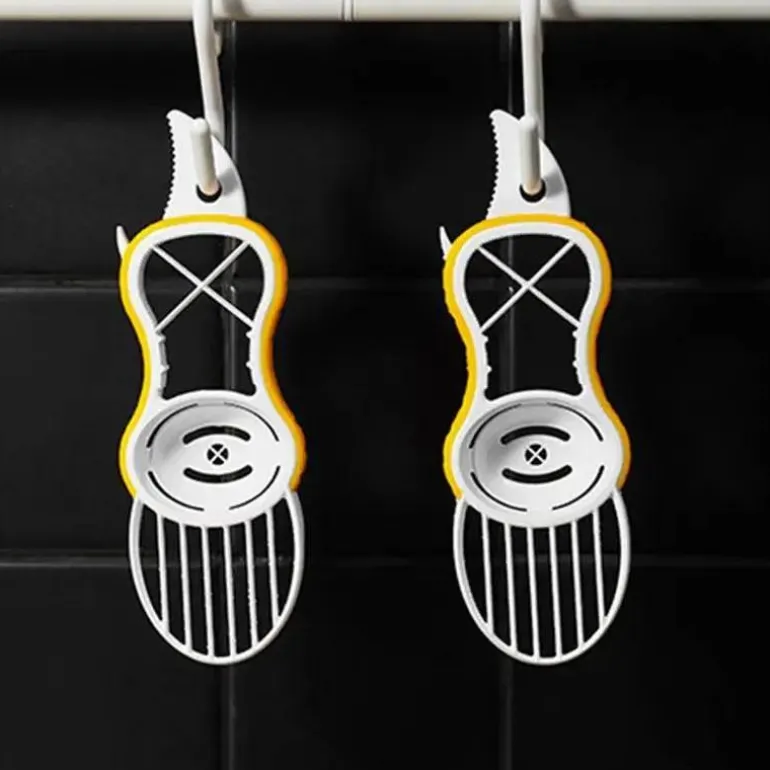 Erleben Sie den Komfort unseres All-in-One-Küchenwerkzeugs, das mühelos Avocados und Kiwis schneidet und gleichzeitig als zuverlässiger Flaschenöffner dient. Dieses vielseitige und benutzerfreundliche Gerät schneidet gleichmäßige Scheiben von weichem Obst und sorgt so für eine reibungslose Zubereitung Ihrer Lieblingsrezepte oder Snacks. Der integrierte Flaschenöffner bietet zusätzliche Funktionalität und ermöglicht Ihnen das mühelose Öffnen Ihrer Lieblingsgetränke. Dieses kompakte und benutzerfreundliche Multifunktionswerkzeug ist ideal für alle, die ihre Küchenarbeit vereinfachen möchten.
