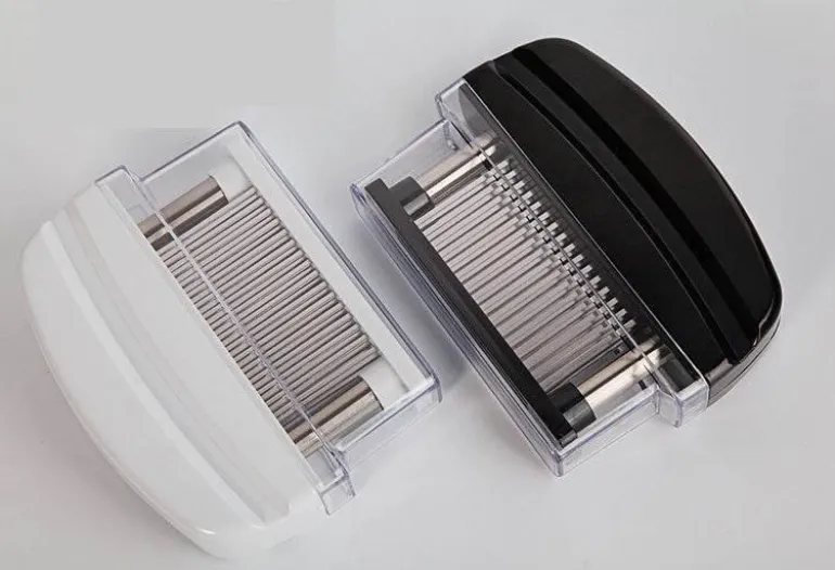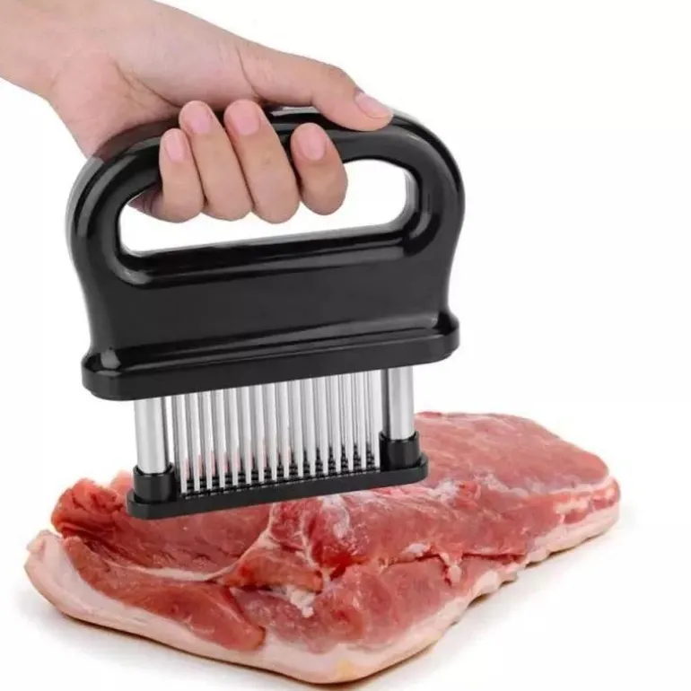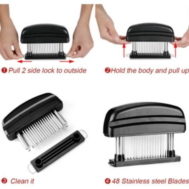 Mit ultrascharfen Edelstahl-Nadelklingen schneidet dieses Gerät mühelos selbst zähe Fleischstücke und ermöglicht Ihnen die Zubereitung köstlicher, appetitanregender Gerichte zu einem Bruchteil der Kosten einer Profiküche. Verwandeln Sie Ihre zähen Stücke in Sekundenschnelle in zarte Steaks.