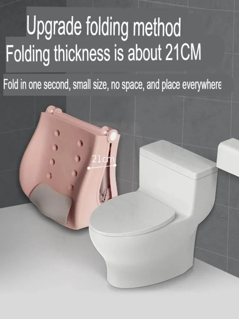 This chair features a convenient foldable design for easy storage, allowing you to place it in tight spaces, whether tucked between the toilet and the tub or hung on the provided wall hook.
