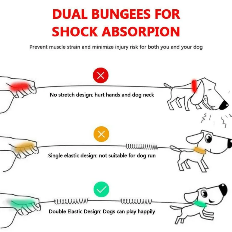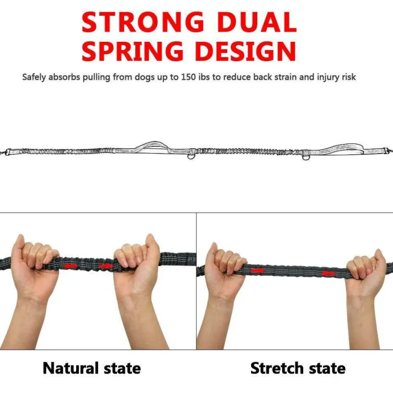 Die Leine ist für mittelgroße und große Hunde geeignet und besteht aus strapazierfähigem und dennoch flexiblem Bungee-Material, das Stöße effektiv absorbiert. Dieses Design ermöglicht Ihnen einen stabilen Schritt und gleichzeitig die Kontrolle über Ihren Hund. Dies macht sie zu einem unverzichtbaren Hilfsmittel für aktive Tierhalter beim Spazierengehen oder Laufen.