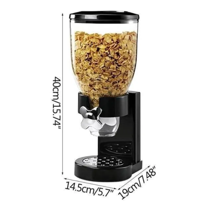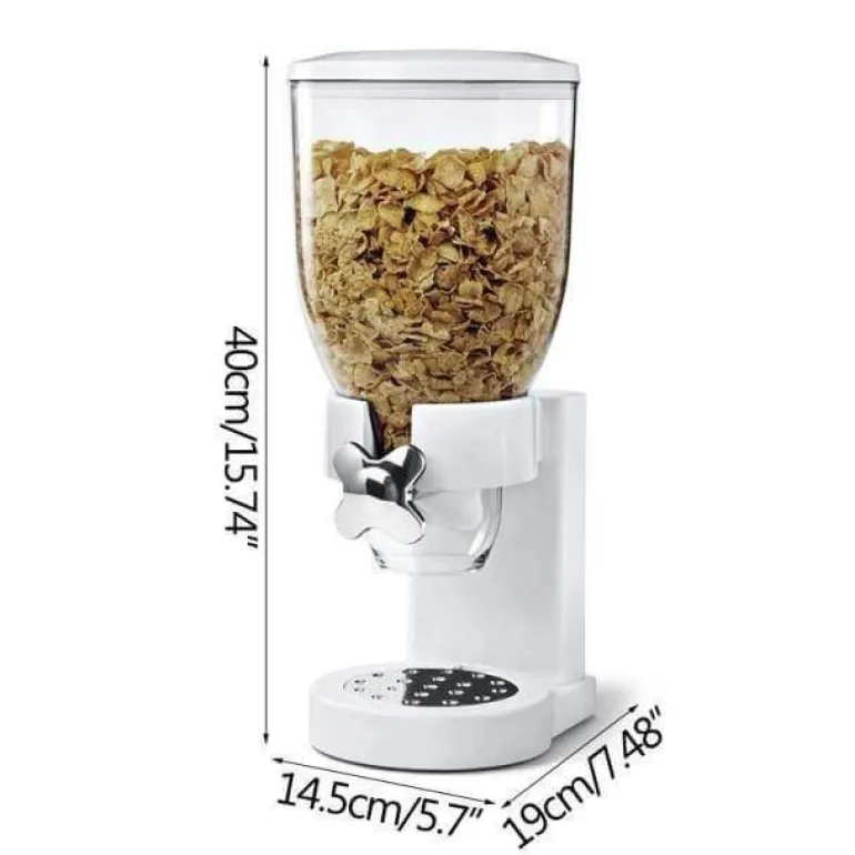 Das benutzerfreundliche Design macht ihn zu einem unverzichtbaren Küchenzubehör und einer stilvollen Ergänzung für jede Arbeitsplatte. Ein einfacher Knopfdruck gibt jedes Mal eine präzise Einzelportion Ihres gewählten Müslis aus und sorgt so für ein stets gleichmäßig portioniertes Frühstück.