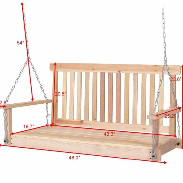 Verschönern Sie Ihren Außenbereich mit dieser elegant gestalteten Gartenschaukel aus Naturholz – perfekt zum Entspannen an sonnigen Tagen oder kühlen Sommernächten. Die aus hochwertigem Tannenholz gefertigte Schaukel ist von Natur aus resistent gegen Fäulnis, Verfall und Insektenbefall und sorgt so für jahrelange Freude. Bei Bedarf reinigen Sie sie einfach mit einem Gartenschlauch oder einem feuchten Tuch.