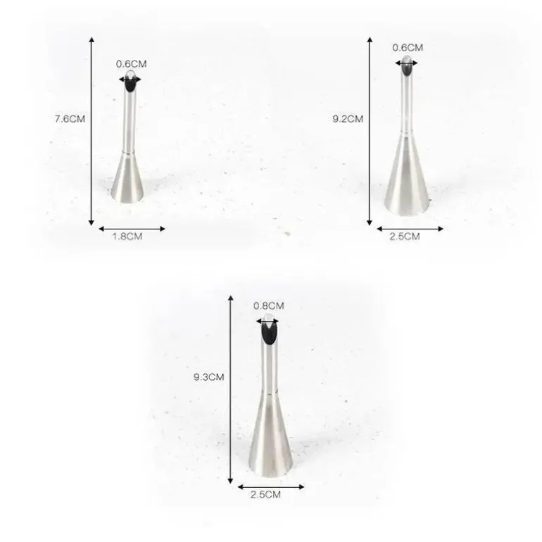 Diese Tüllen erfüllen die Qualitäts- und Sicherheitsstandards von CIQ und sind eine zuverlässige Wahl für jedes Backprojekt. Verwandeln Sie Ihre Desserts in optisch beeindruckende Meisterwerke, die Freunde und Familie beeindrucken werden – mit der Präzision und Benutzerfreundlichkeit dieses Tüllensets.