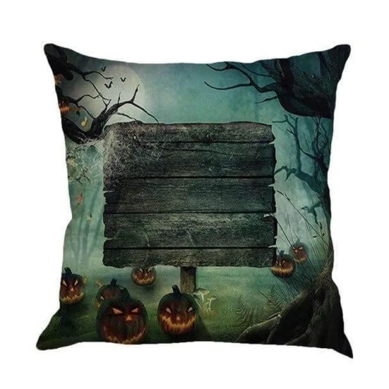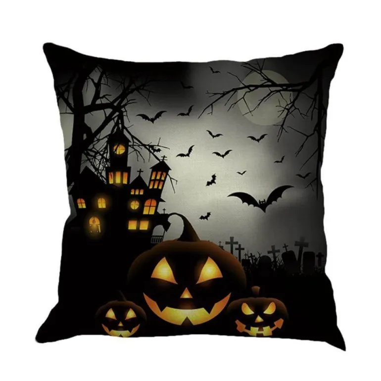 Die quadratische Form besticht durch ein malerisches Druckmuster, das die Essenz von Halloween einfängt und sie zu einer idealen Dekoration für die gruselige Jahreszeit macht. Mit ihrem schlichten Stil, der sich nahtlos in verschiedene Designschemata einfügt, bieten diese Kissenbezüge sowohl Komfort als auch Ästhetik.
