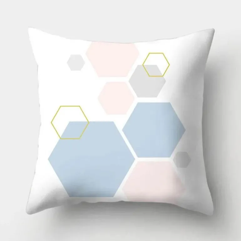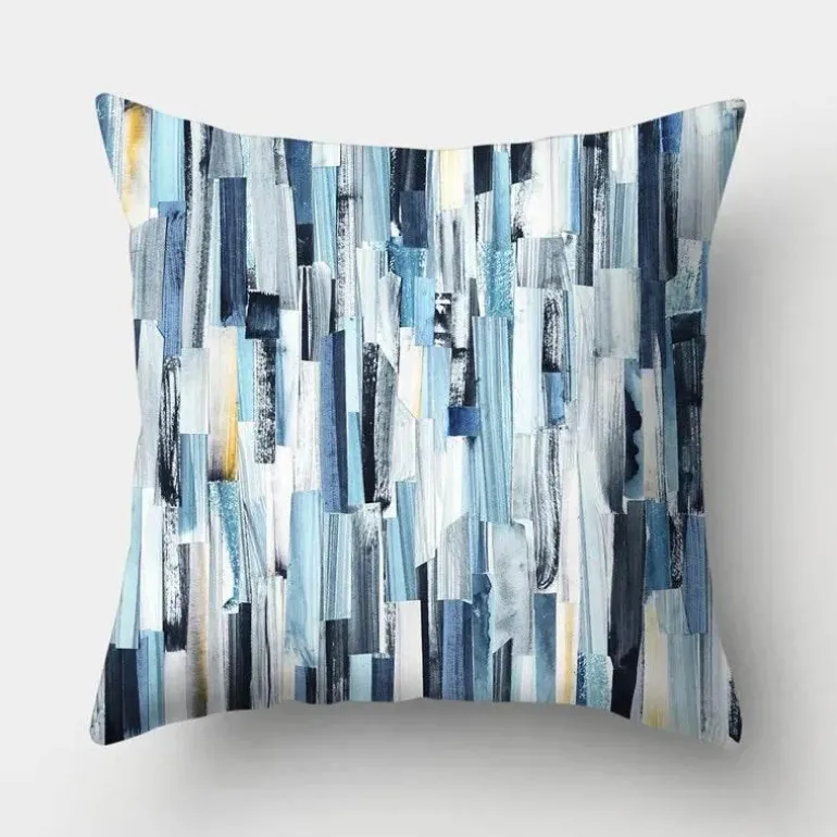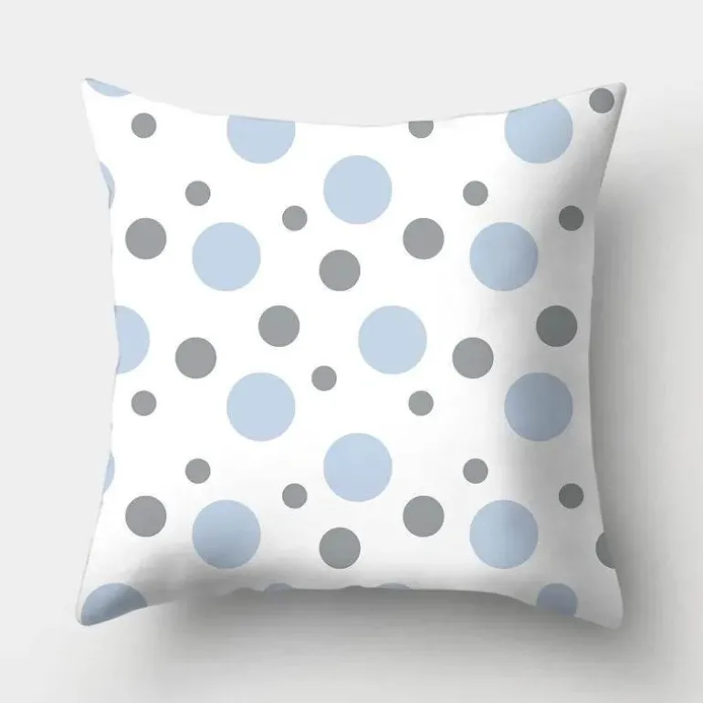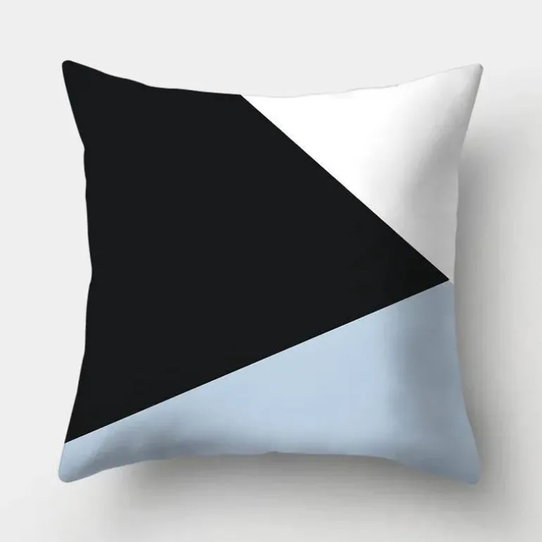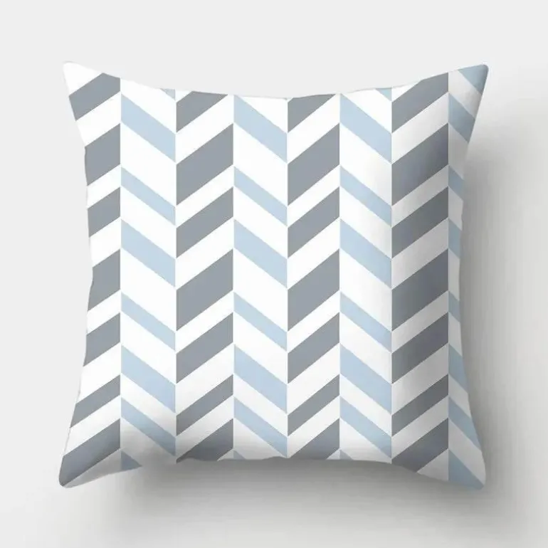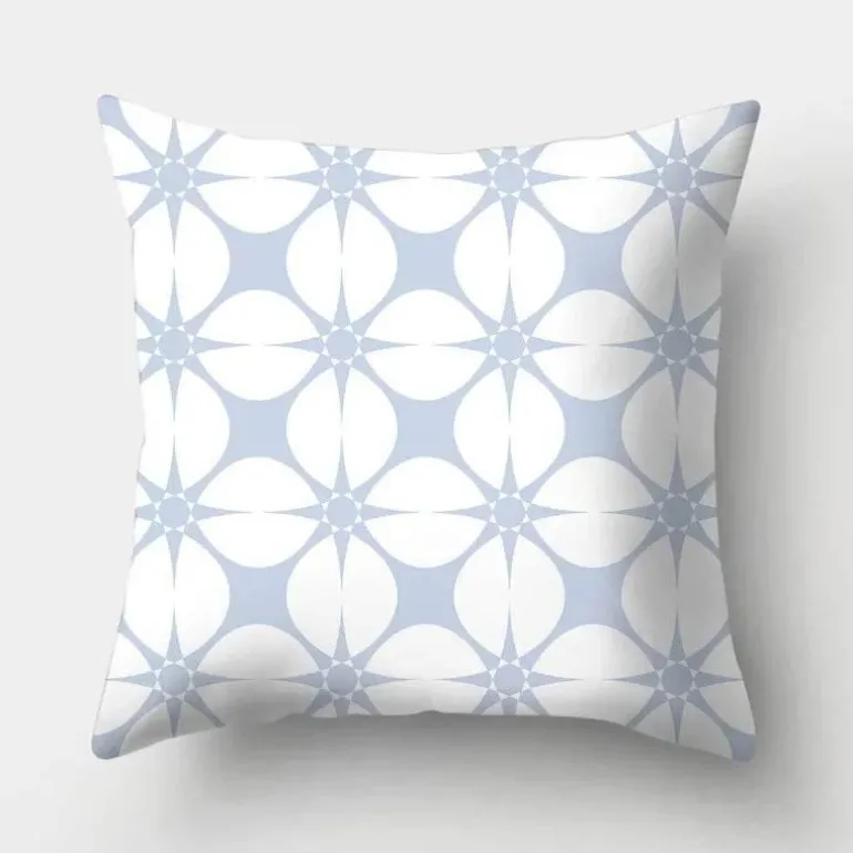 Diese Kissenbezüge aus hochwertigem 100 % Polyester bieten ein weiches, luxuriöses Gefühl und sind gleichzeitig langlebig und pflegeleicht. Das auffällige geometrische Design verleiht Ihrer Einrichtung ein modernes Flair, während der beruhigende Hellblauton jedem Raum eine ruhige Atmosphäre verleiht.