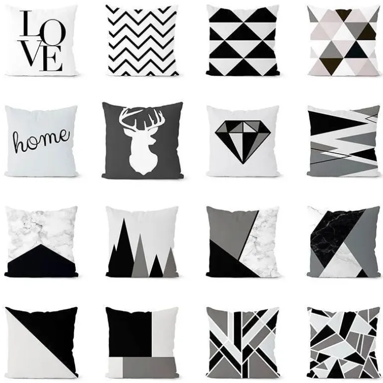 Verschönern Sie Ihre Wohnkultur mit diesem geometrischen Kissenbezug-Set in Schwarz und Weiß. Eine stilvolle und moderne Ergänzung für Ihr Sofa, die zeitgenössische Eleganz ausstrahlt. Die Kissenbezüge aus hochwertigem Polyester-Peachskin bieten nicht nur ein weiches, luxuriöses Gefühl, sondern tragen auch zu einem umweltfreundlichen Lebensstil bei und tragen positiv zu Ihrer Umwelt bei.