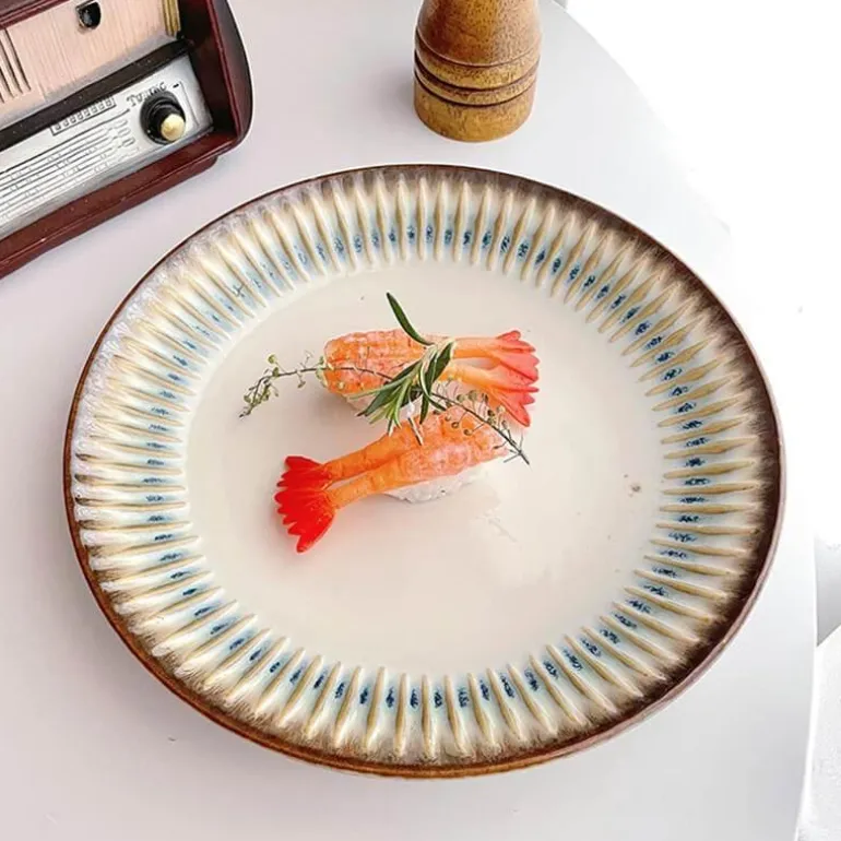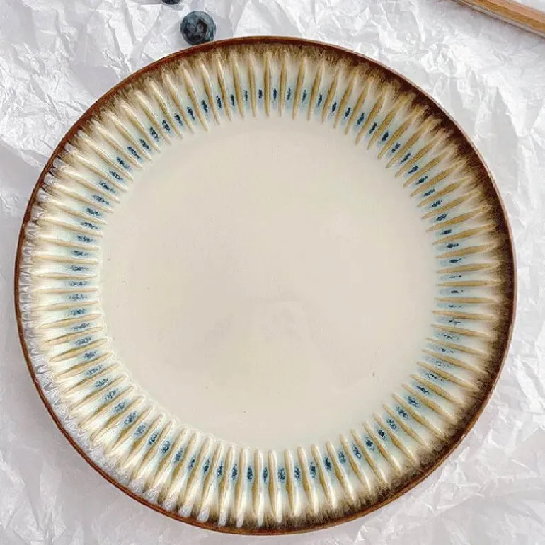 Integrieren Sie diesen geprägten Keramikteller in Ihre Sammlung und genießen Sie die harmonische Mischung aus Funktionalität und Vintage-inspiriertem Design, die er Ihrem Speiseerlebnis verleiht.