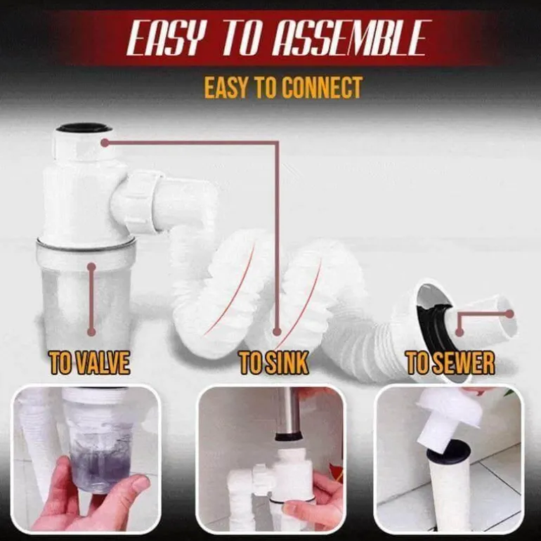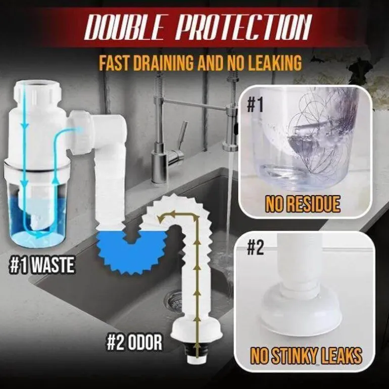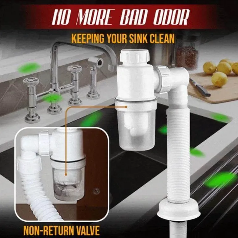 Verwandeln Sie Ihre Küchenspüle mit dem geruchsfreien, erweiterbaren Filterrohr für Badezimmer und Küche. Es verbessert Ihr Abflusssystem doppelt. Dieses innovative, doppelte Anti-Geruchs-Abflussrohr filtert effektiv Abfallrückstände und sorgt dafür, dass unangenehme Gerüche aus Ihrer Spüle ferngehalten werden, während sie sauber und leicht zu handhaben bleibt.