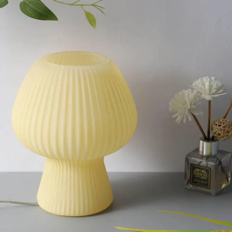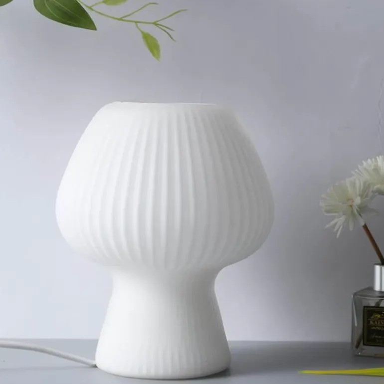 Für eine einheitliche Ästhetik können Sie Ihre gestreifte Pilz-Tischlampe durch eine einfache gestreifte Keramikvase oder ein modernes, schlichtes Schreibtisch-Aufbewahrungsregal ergänzen.