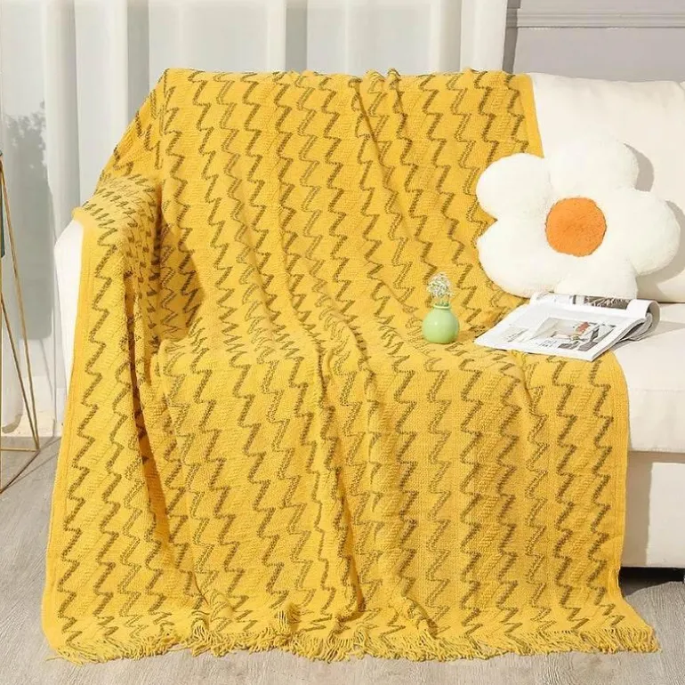 Diese vielseitige Decke für Frühling und Herbst vereint Strapazierfähigkeit und Komfort und wird so zu einem beliebten Begleiter in Ihrem Zuhause. Mit einer Farbechtheit von 4 sind ihre leuchtenden Farbtöne langlebig, während das geometrische Muster jedem Ambiente einen modernen Touch verleiht.