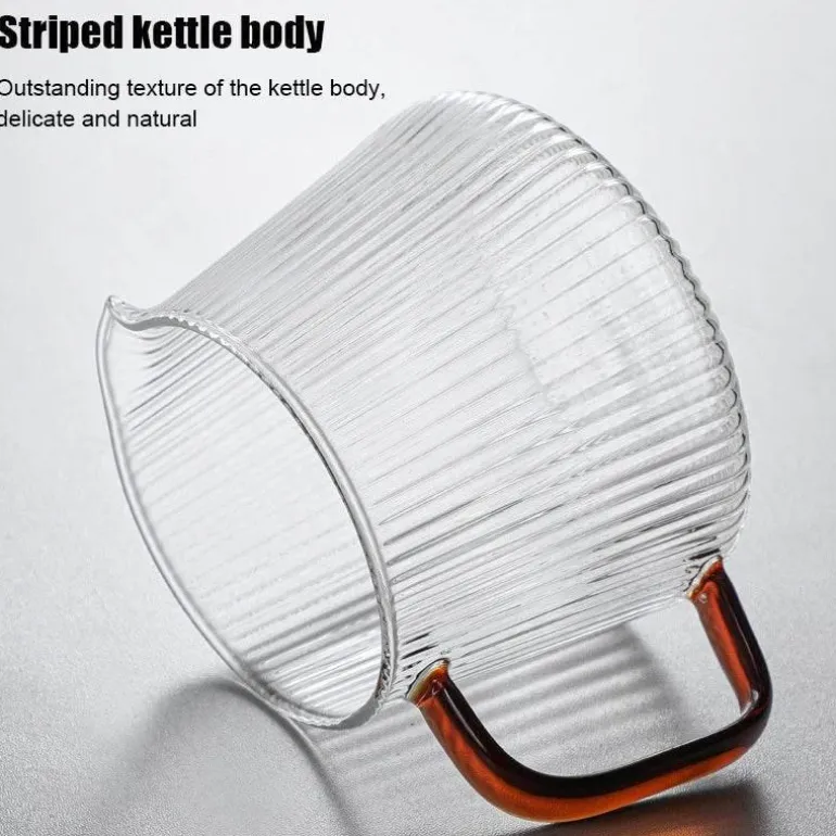 Erleben Sie die perfekte Kombination aus Eleganz und Funktionalität mit unserem gestreiften Glas-Kaffeekessel. Der V-förmige Ausguss sorgt für müheloses Ausgießen. Diese stilvolle Teekanne, erhältlich in zwei Größen – 350 ml und 500 ml – verleiht Ihrer Kaffee- und Teesammlung einen modernen Touch und ergänzt gleichzeitig Ihre Kücheneinrichtung.