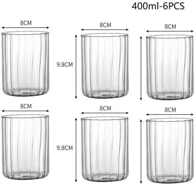Das transparente Glas mit seinen leuchtenden Streifen verleiht Ihrer Tischdekoration eine fröhliche Note, während die umweltfreundlichen Materialien ein nachhaltiges Engagement für umweltbewusste Verbraucher unterstreichen. Ob Sie einen gehaltvollen Whisky genießen, einen cremigen Latte schlürfen oder mit Wein anstoßen – dieses Trinkgeschirr-Set bereichert jeden Moment mit Eleganz.